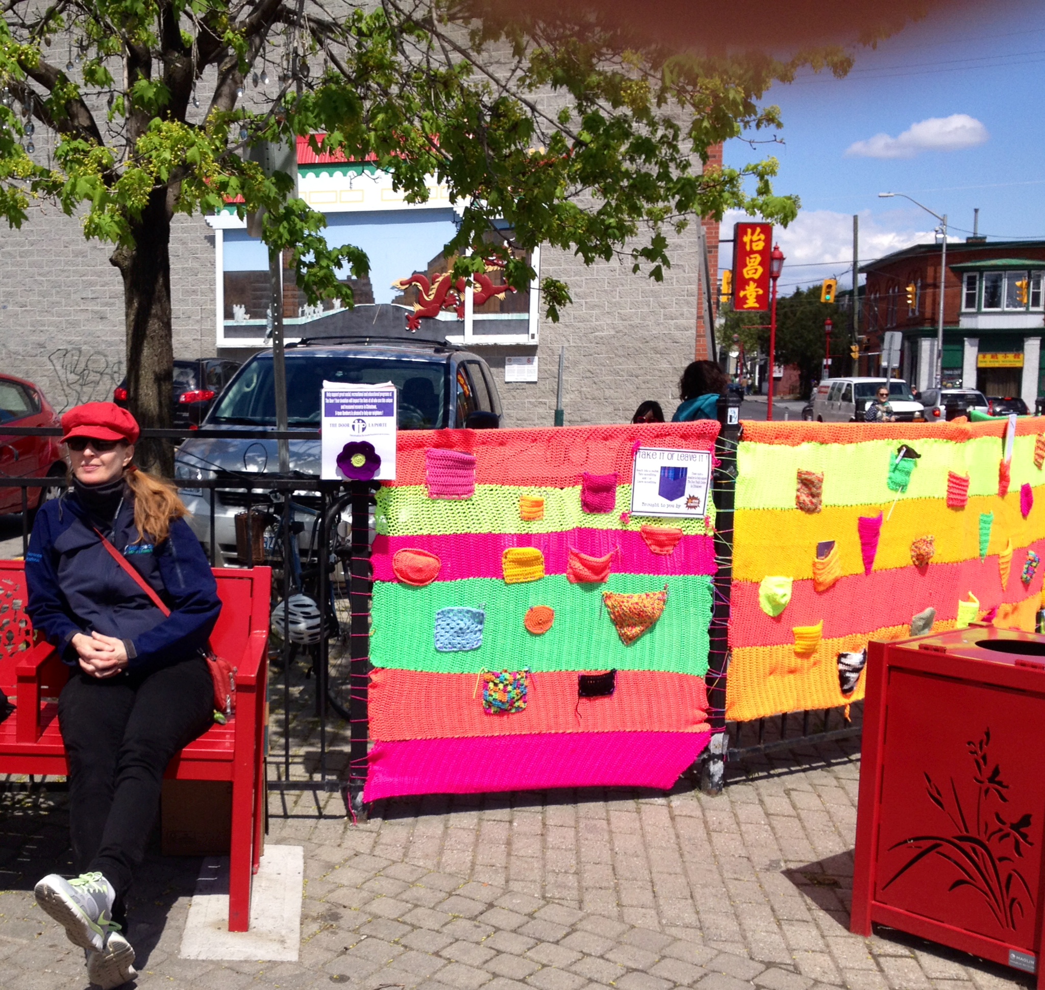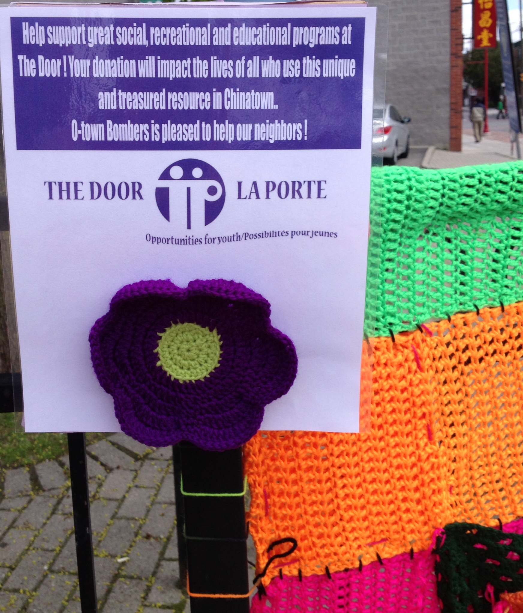 I’m also a yarnbomber (aka textile artist, aka crocheter, aka hooker) ! And this is the installation my team, The O-Town Bombers whipped up for Chinatown Remixed 2014.